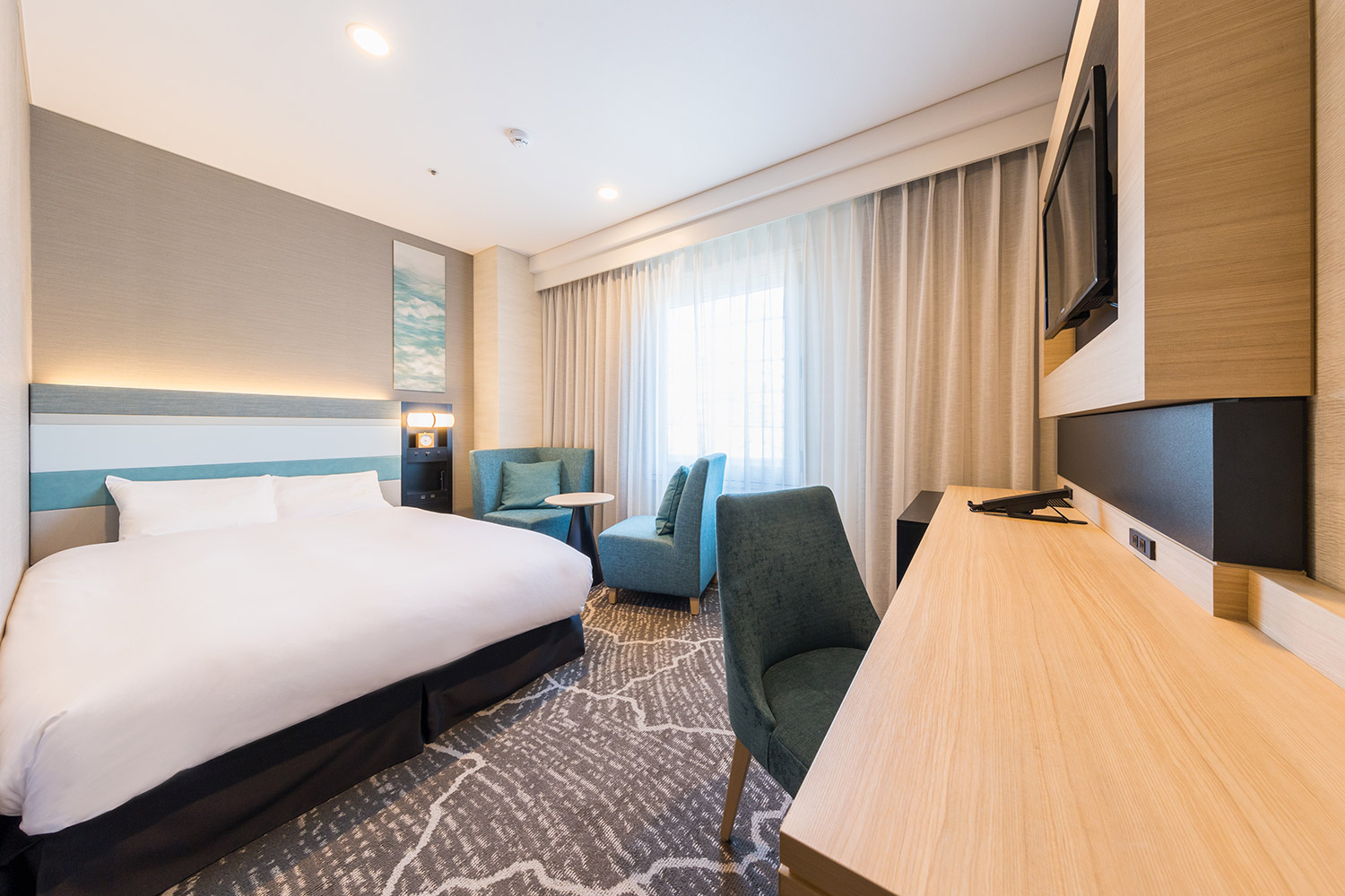 고급 침구와 충실한 기능, 어메니티를 완비하여 스트레스가 없는 편안함을 추구한 객실.