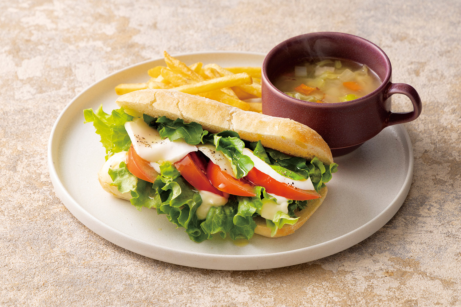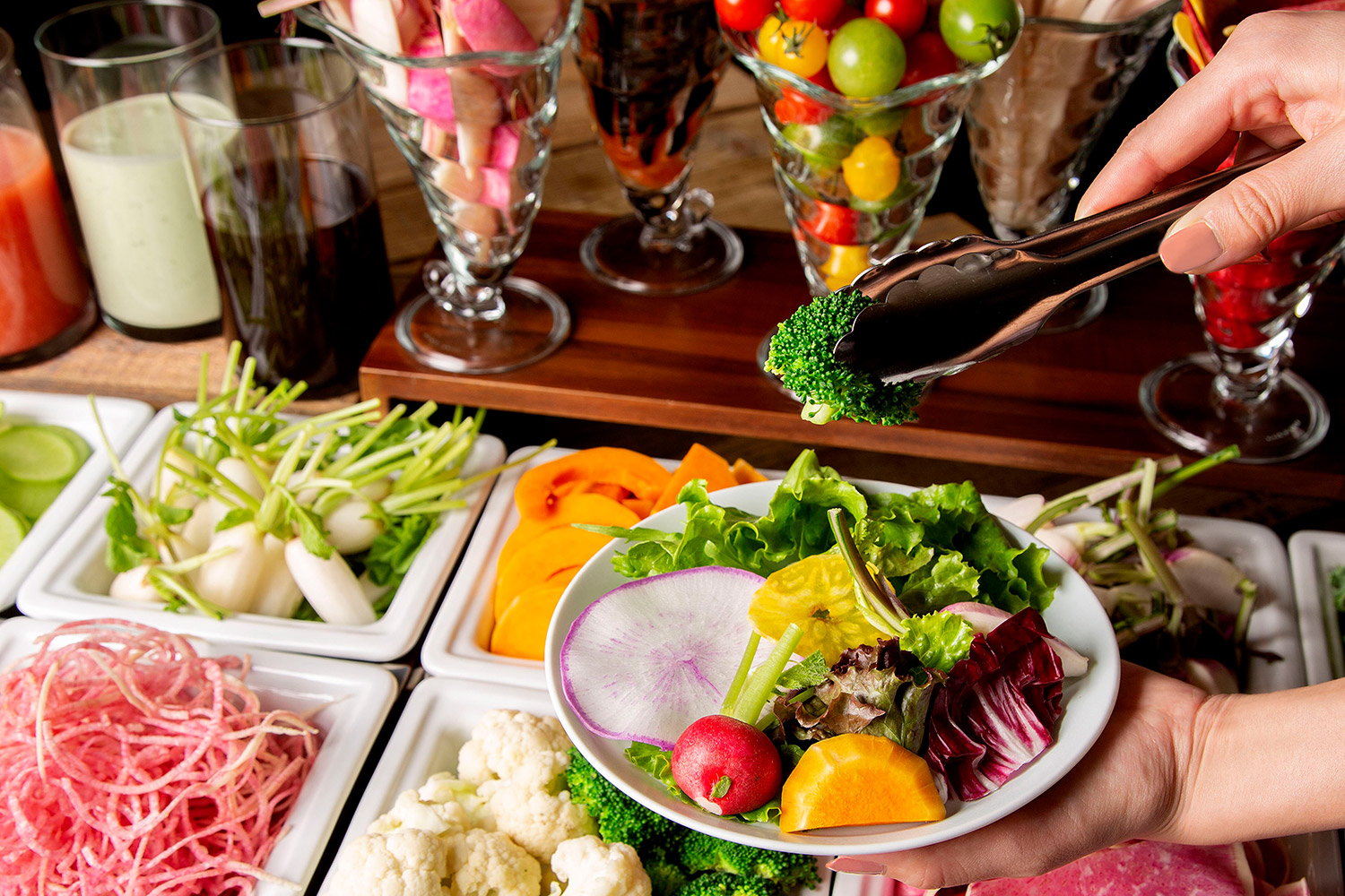我們提供日式料理、西式料理、三明治三種主餐選擇,並搭配三浦產區的新鮮蔬菜沙拉和多種飲品的半自助餐式早餐。